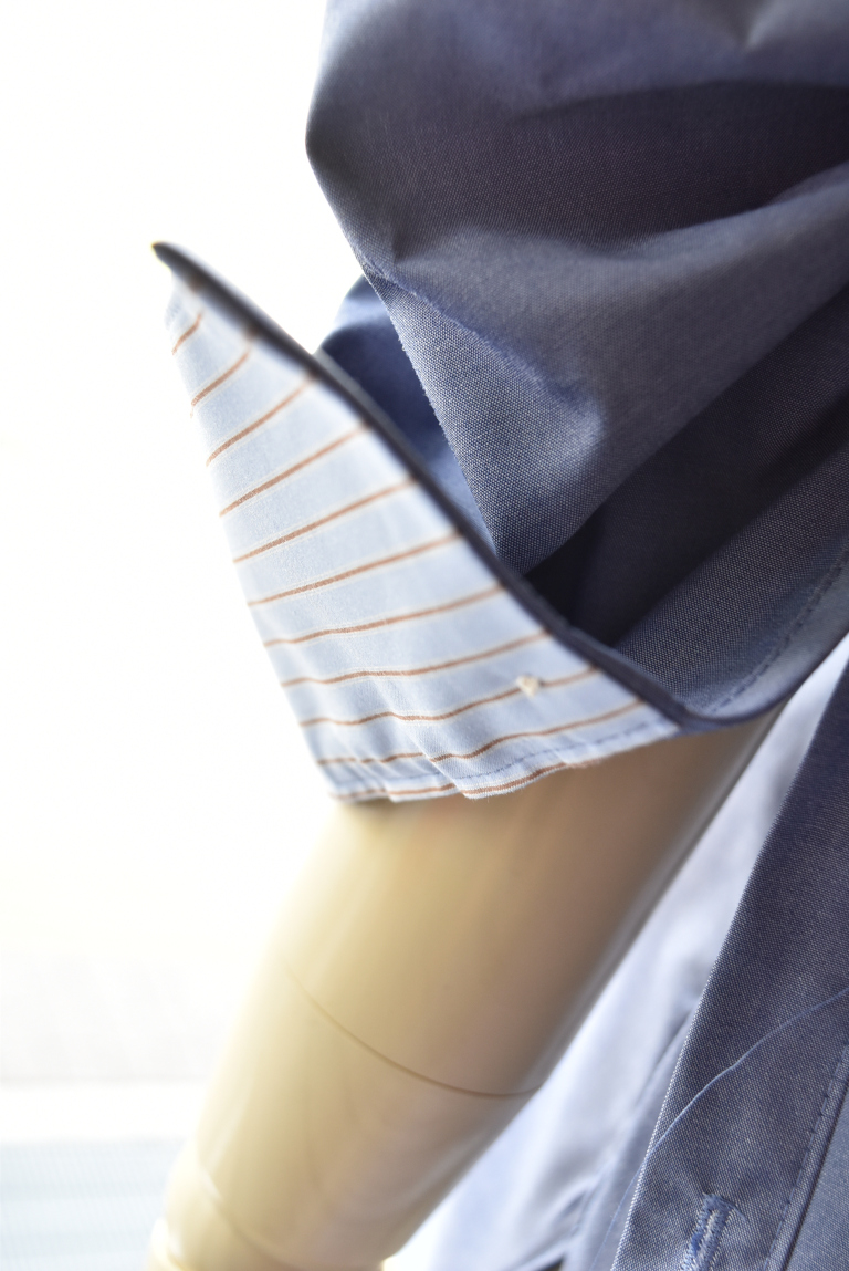 シャツを重ね着しているかのような2枚重ねの拘りデザイン。