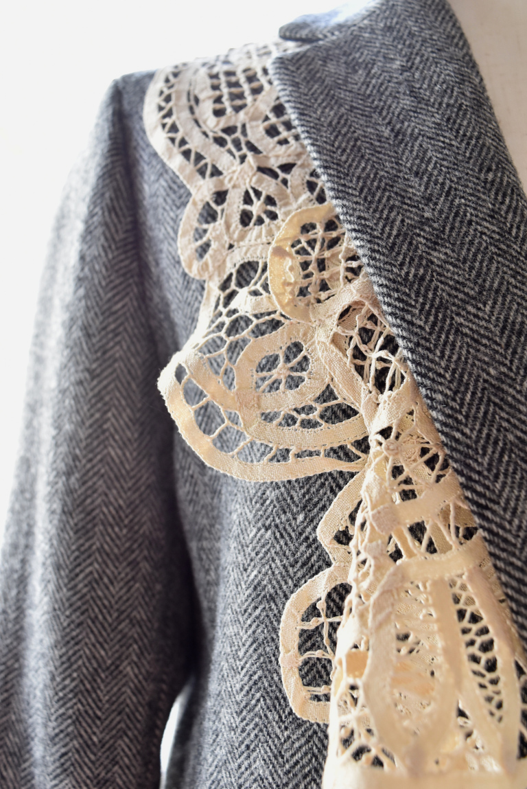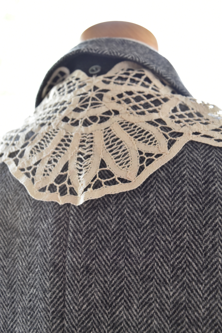 汕頭でヨーロッパ向けに作られた、バテンレースのつけ衿付きです。