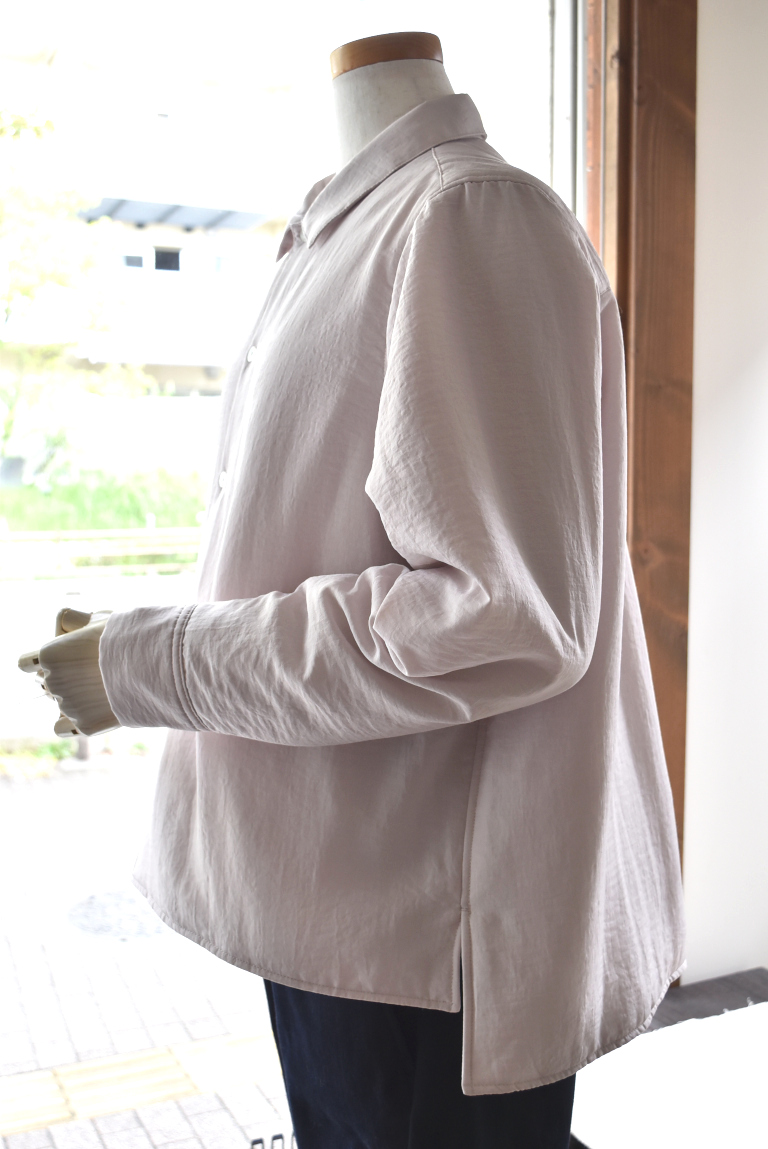フィブリル加工を施したポリエステルを表裏に使い、中綿を挟んだパテッドシャツ。