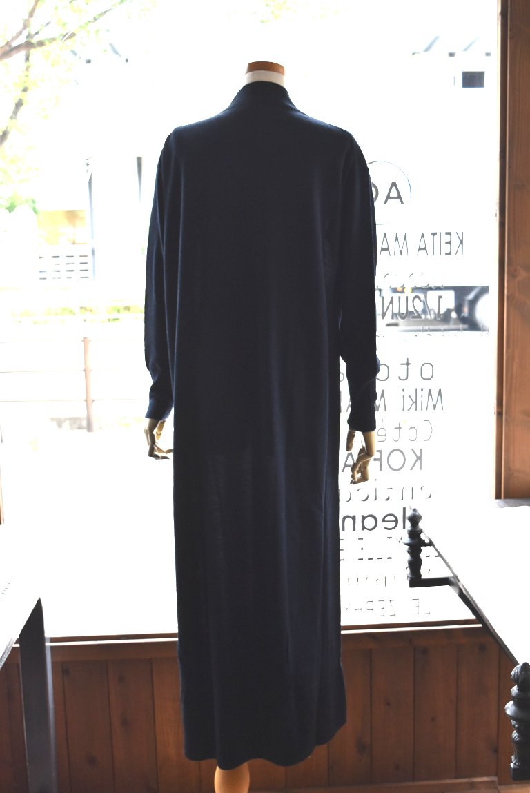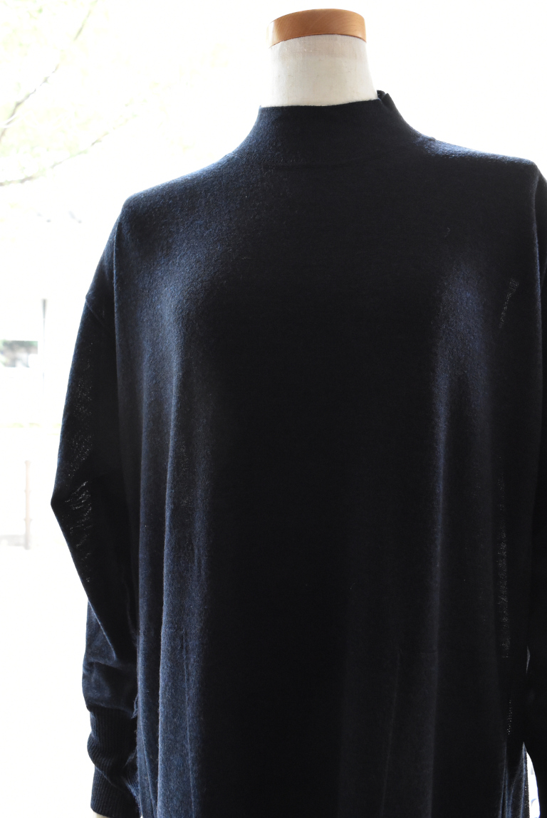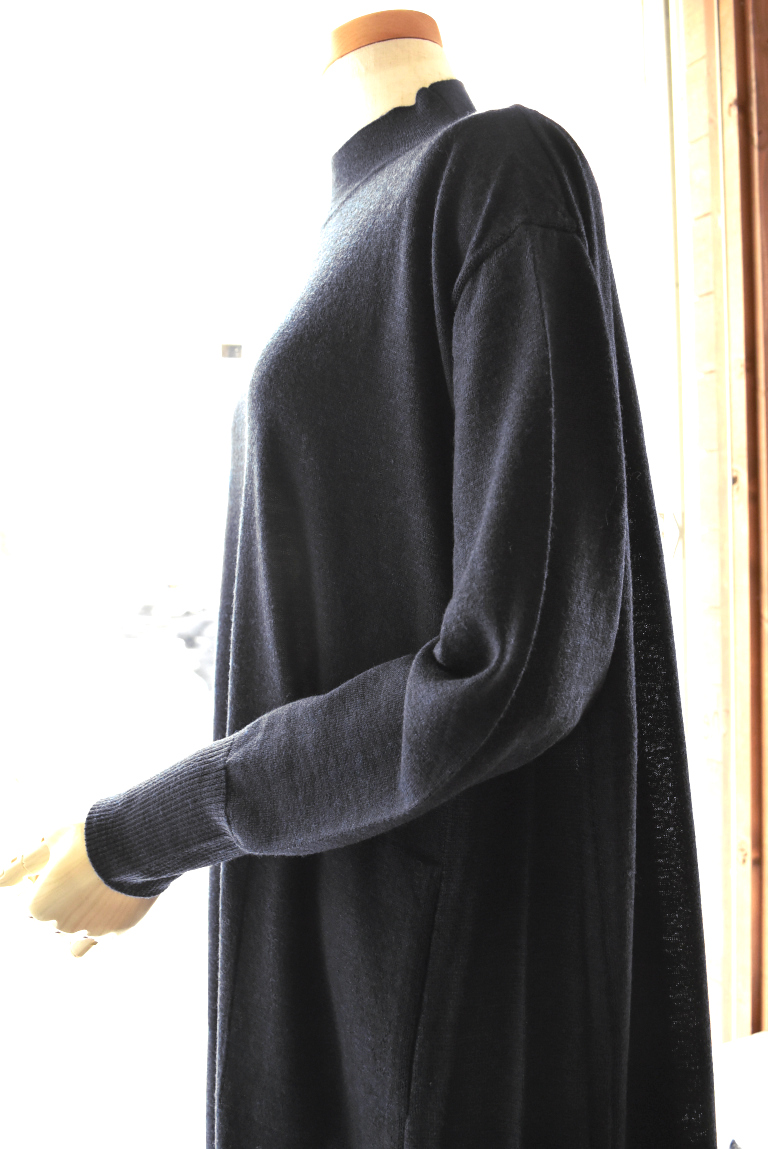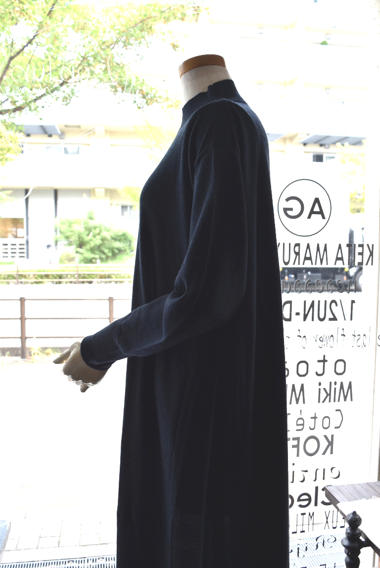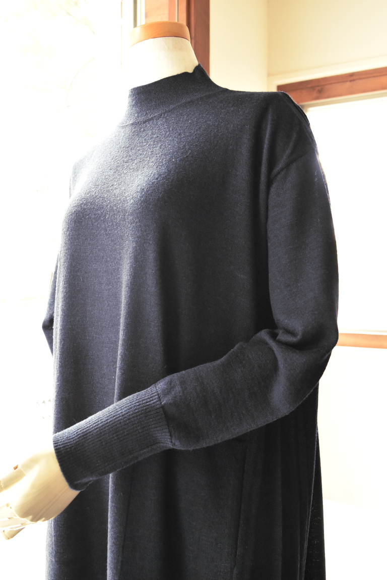 ハイネックと緩やかなAラインの綺麗めなシルエットで、ドレスの様に上品な印象です。