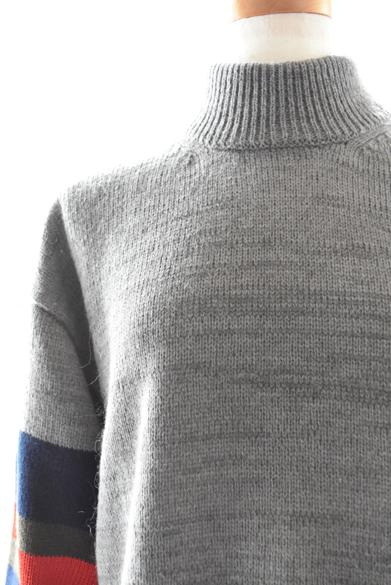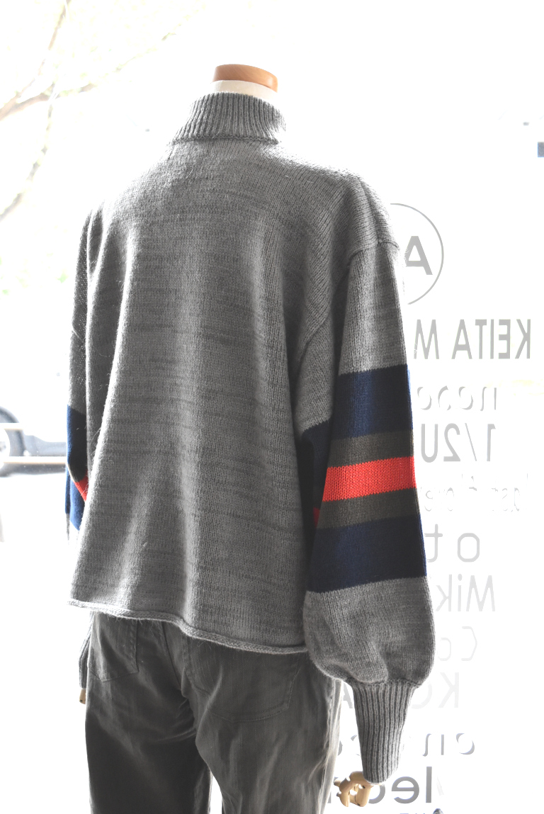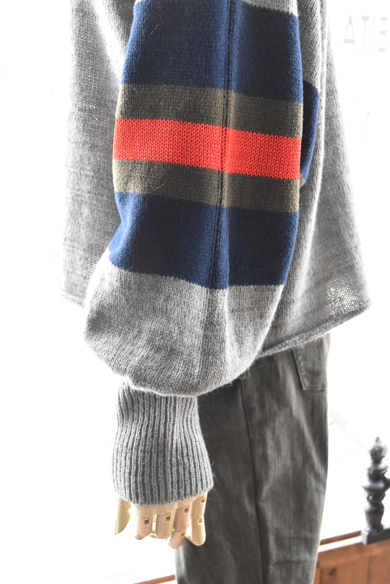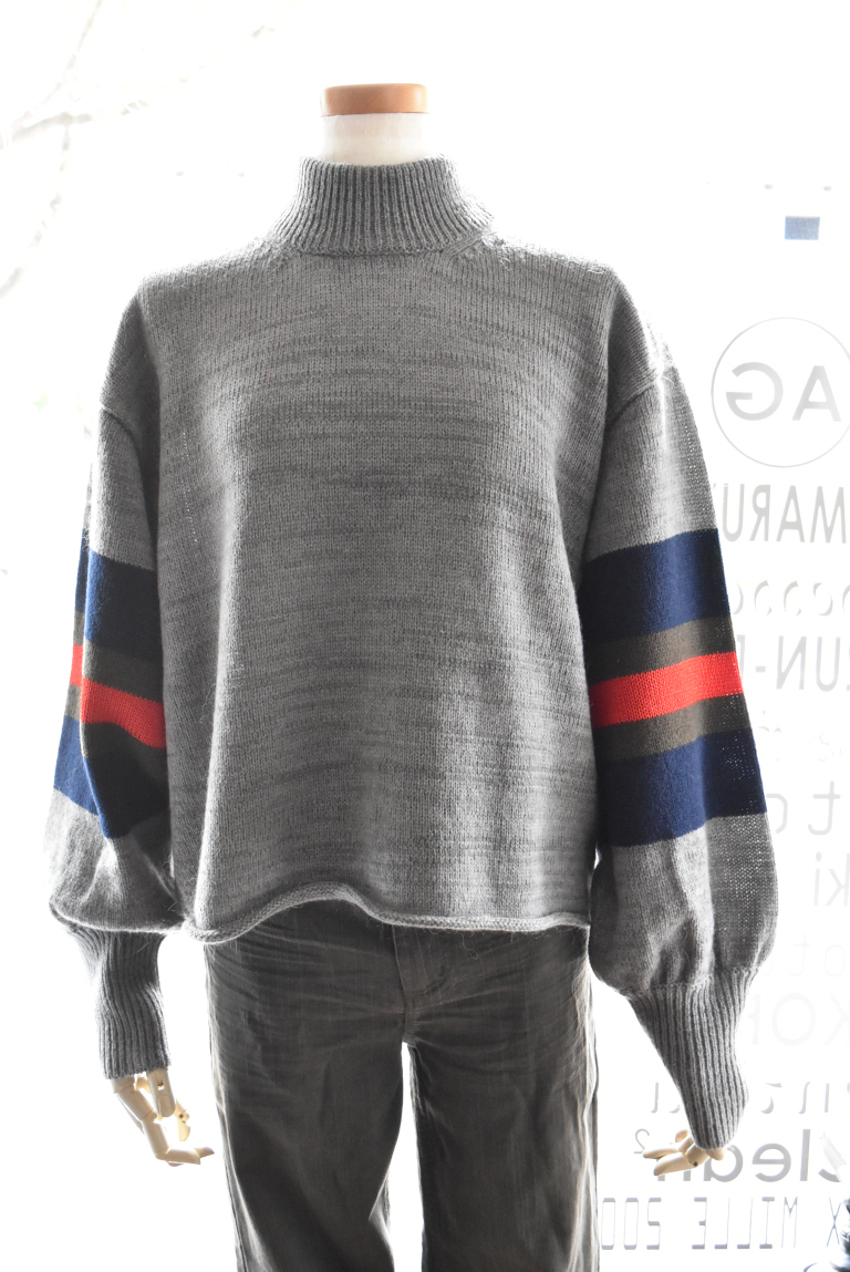 袖のボリュームとトラディッショナルカラーのボーダーが可愛いハーフネックセーター。