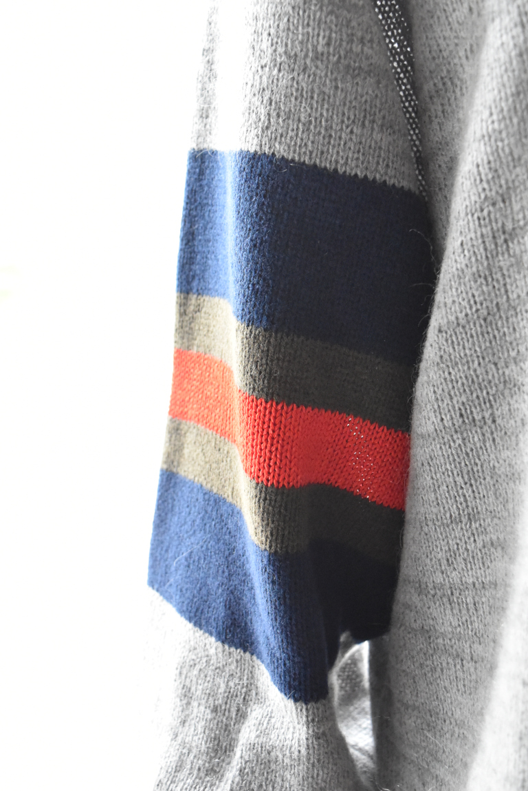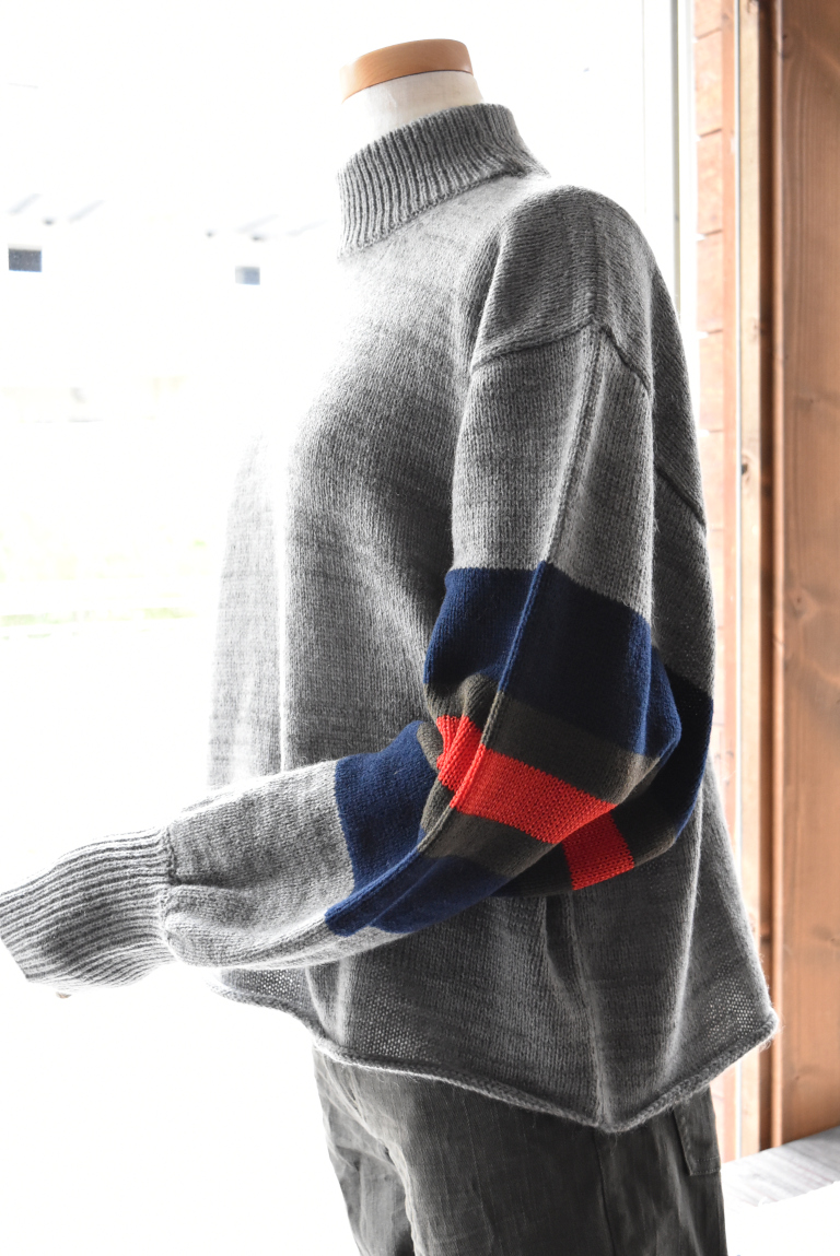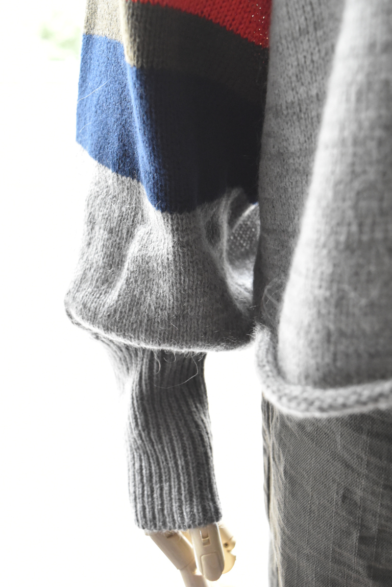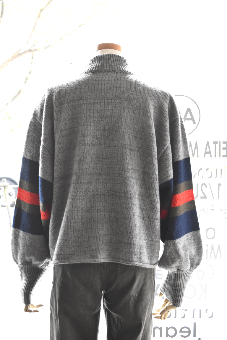 袖のボリュームとトラディッショナルカラーのボーダーが可愛いハーフネックセーター。