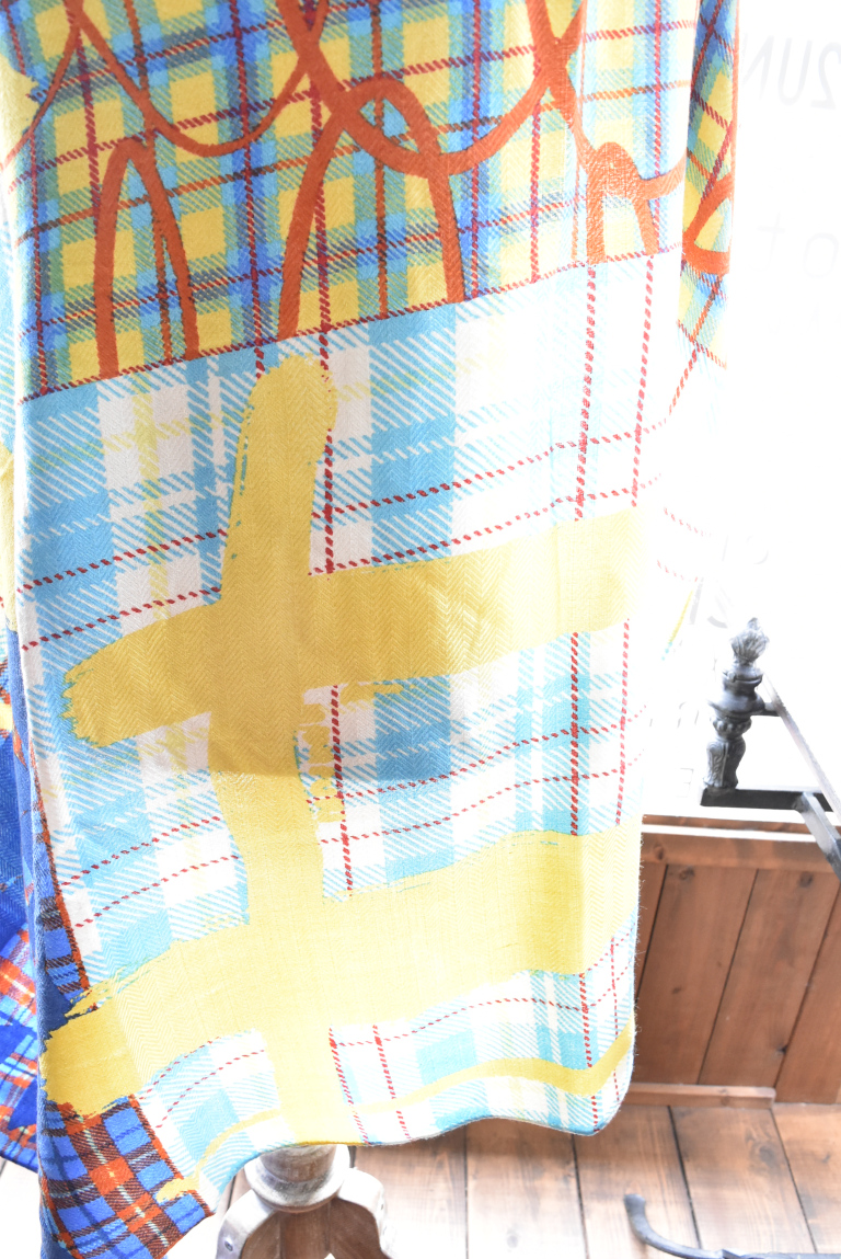 プリントの加工はシルクスカーフのプリント技法と同様にインドの職人によって1枚ずつ丁寧に手㮈染されています。