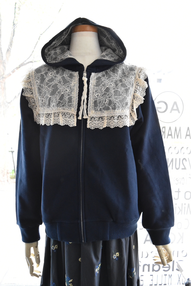 Rijoui(リジュイ) 25A/W スエットのレース付ジップアップパーカー