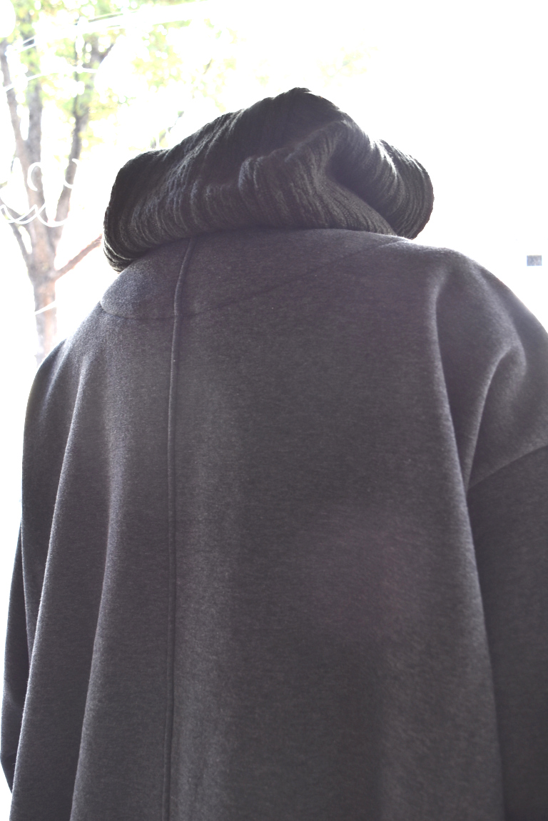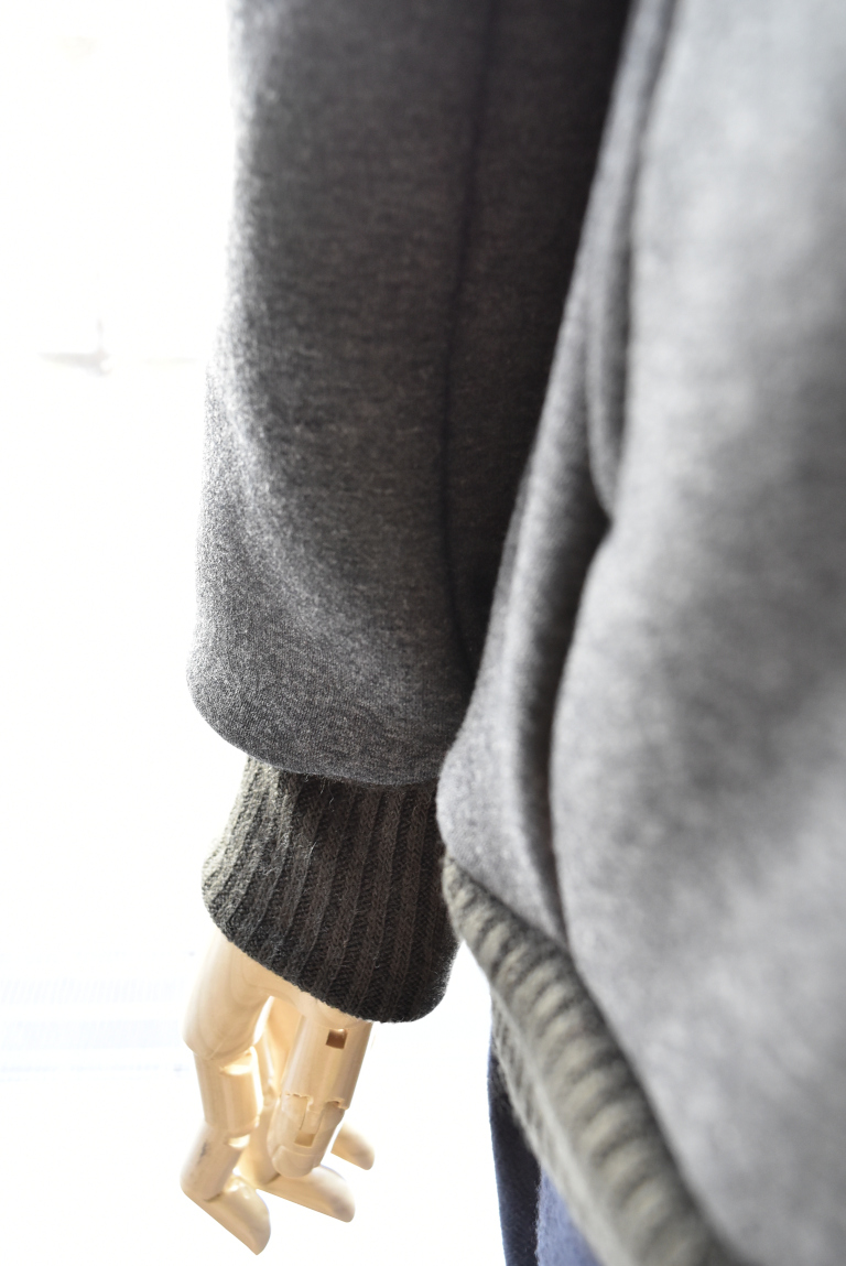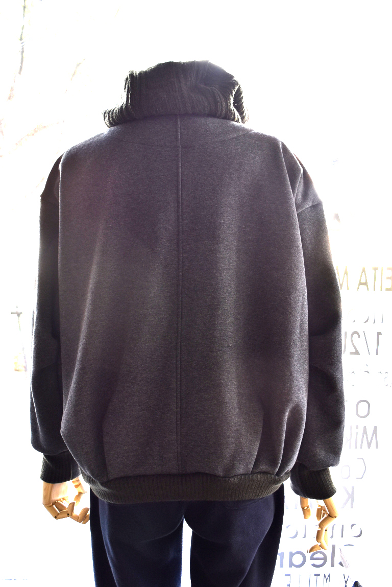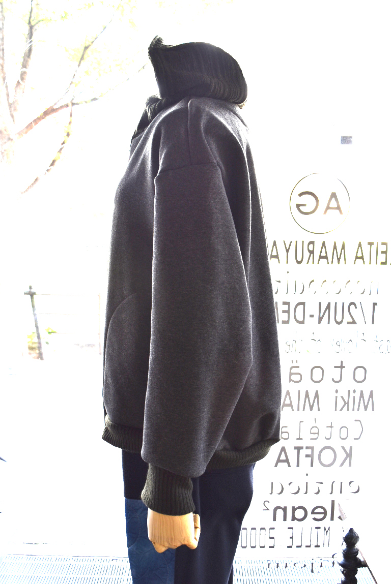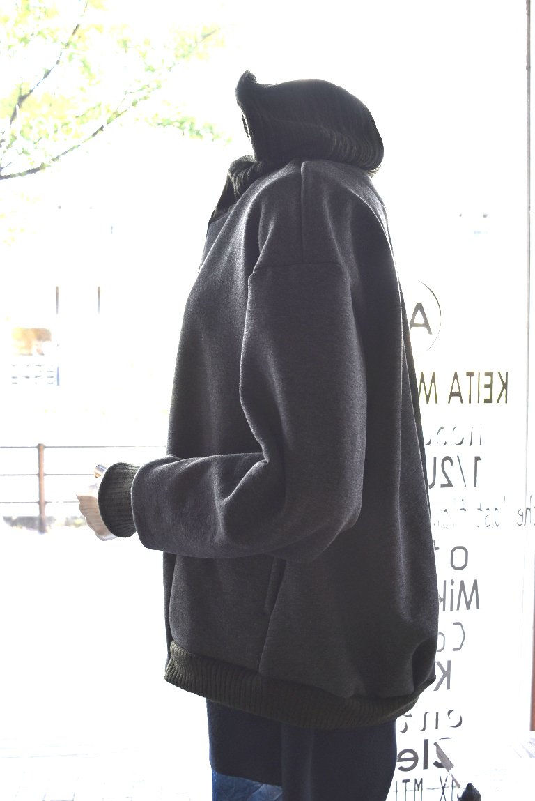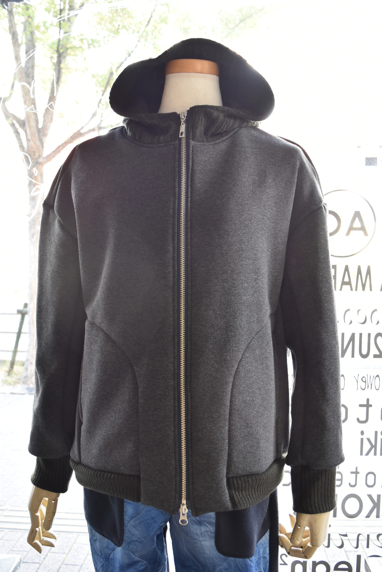フード部分にはケーブル柄のセーターライクなジャージー素材を使用。