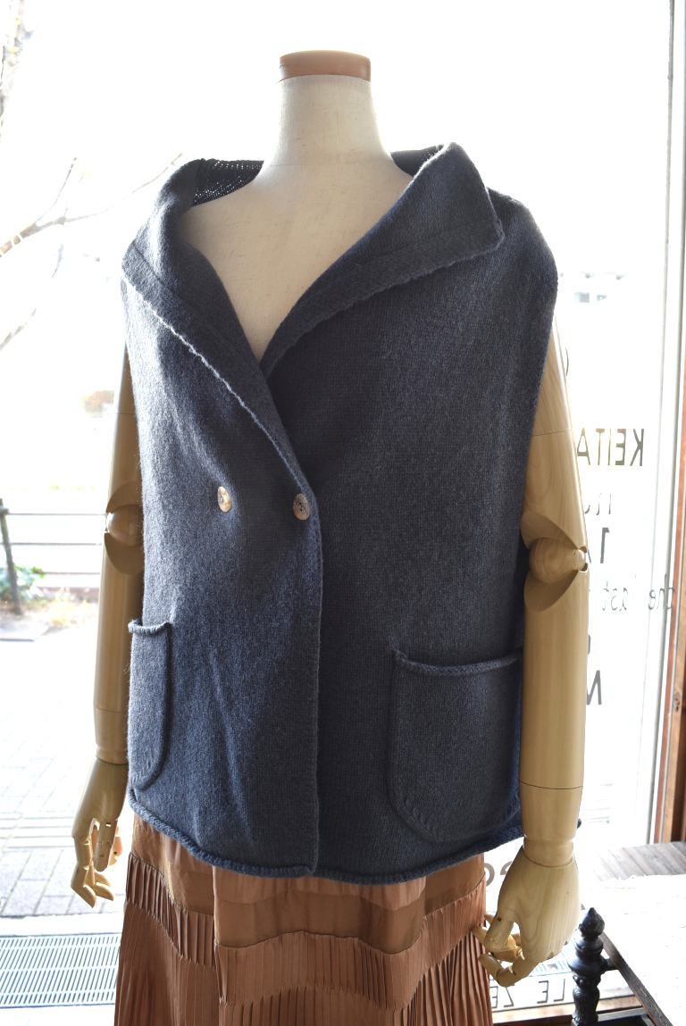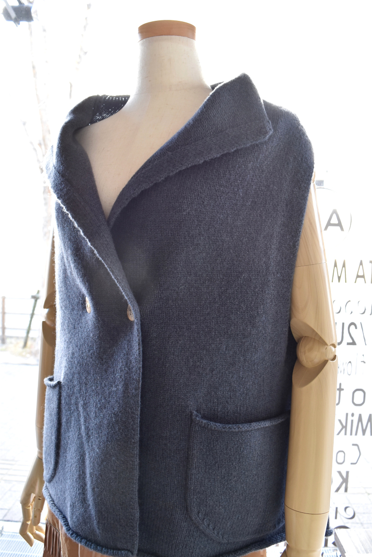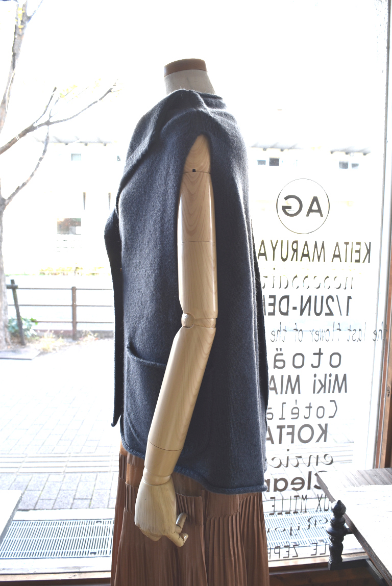 オープンな襟なので、インナーにブラウスやタートル、カットソーなど重ねて楽しんで頂けます。
