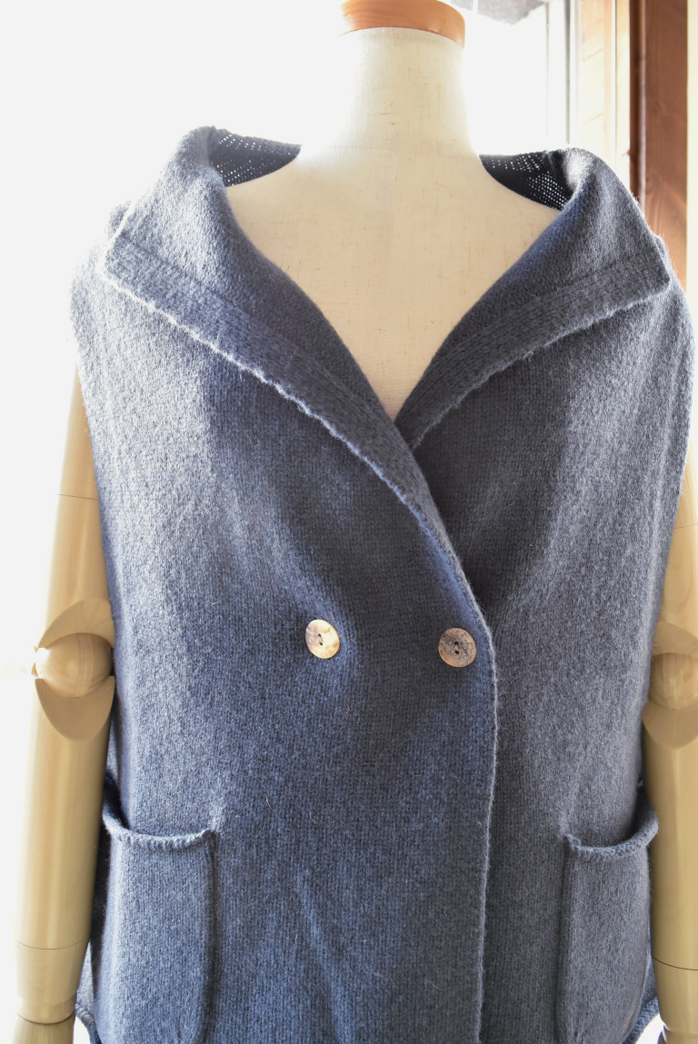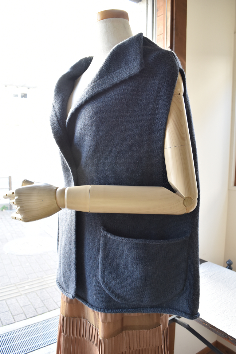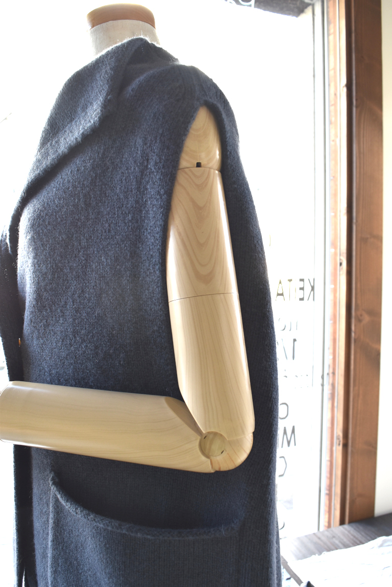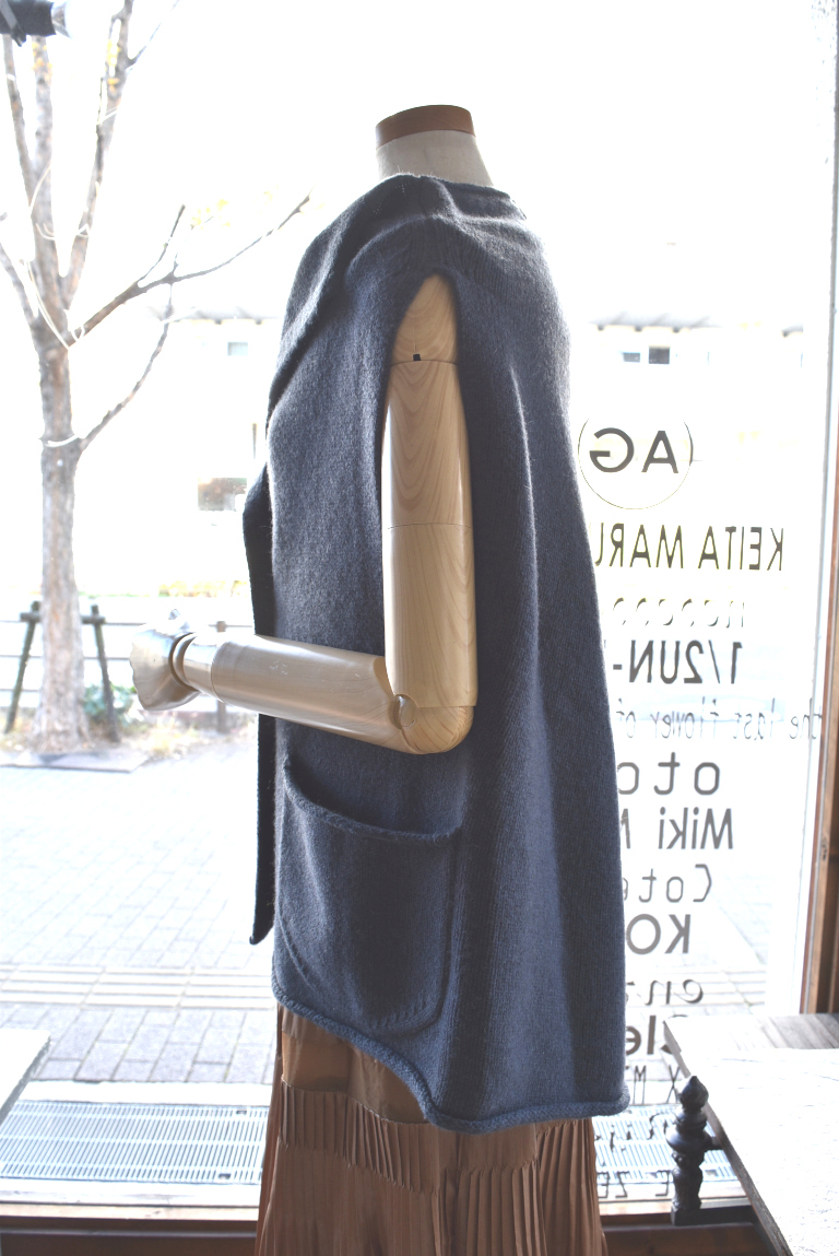 オープンな襟なので、インナーにブラウスやタートル、カットソーなど重ねて楽しんで頂けます。