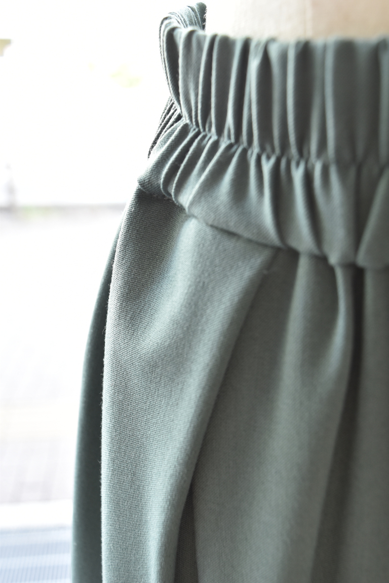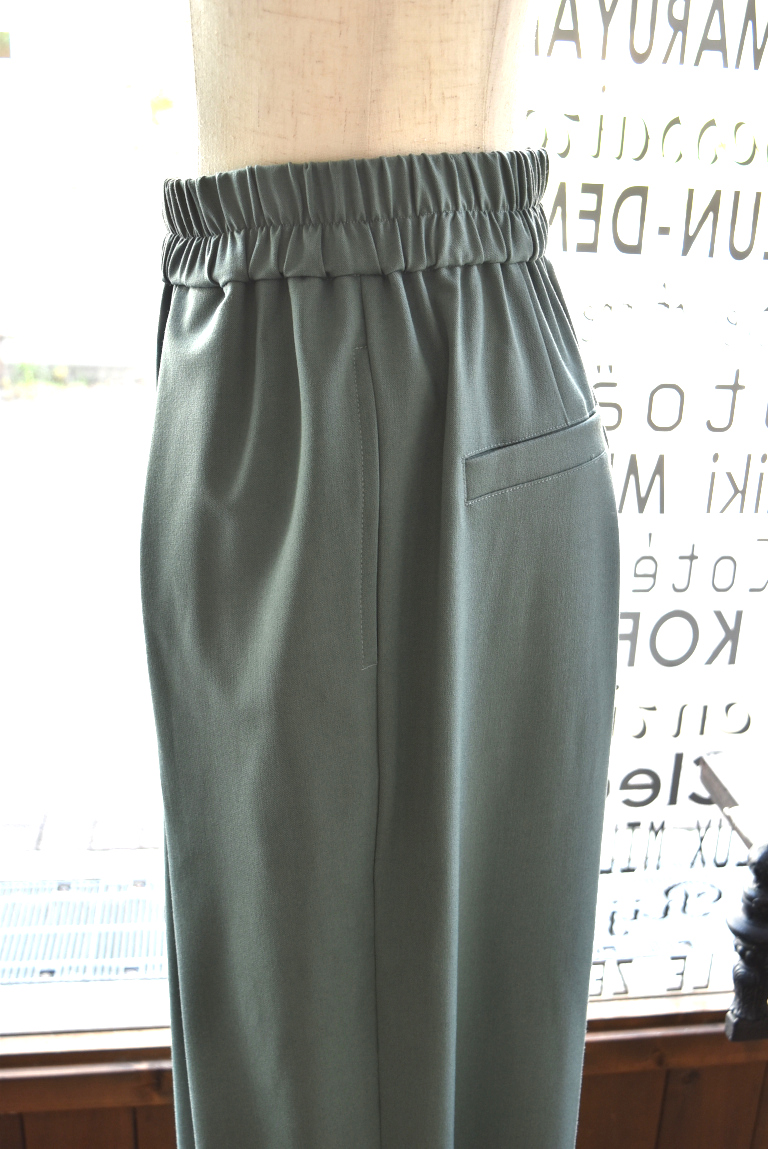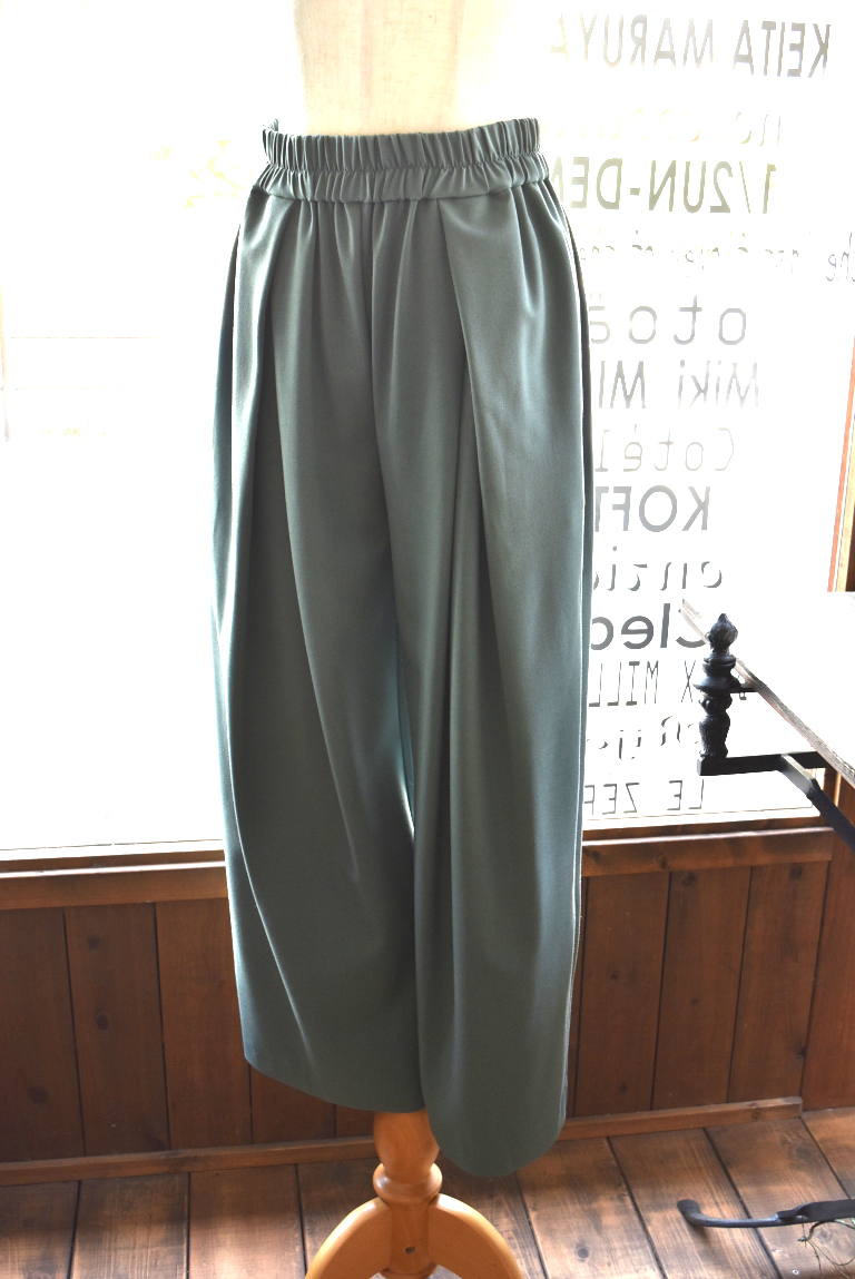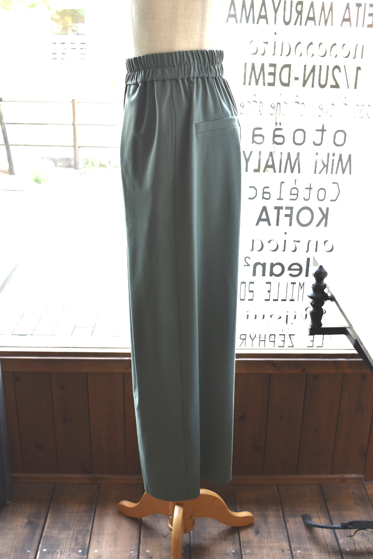 ウエストはぐるりゴム仕様で前開きのないイージーパンツですが、綺麗めなシルエットに!!