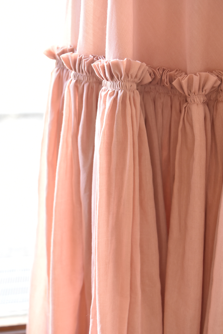 たっぷりと入ったフリルとギャザーがポイントに。