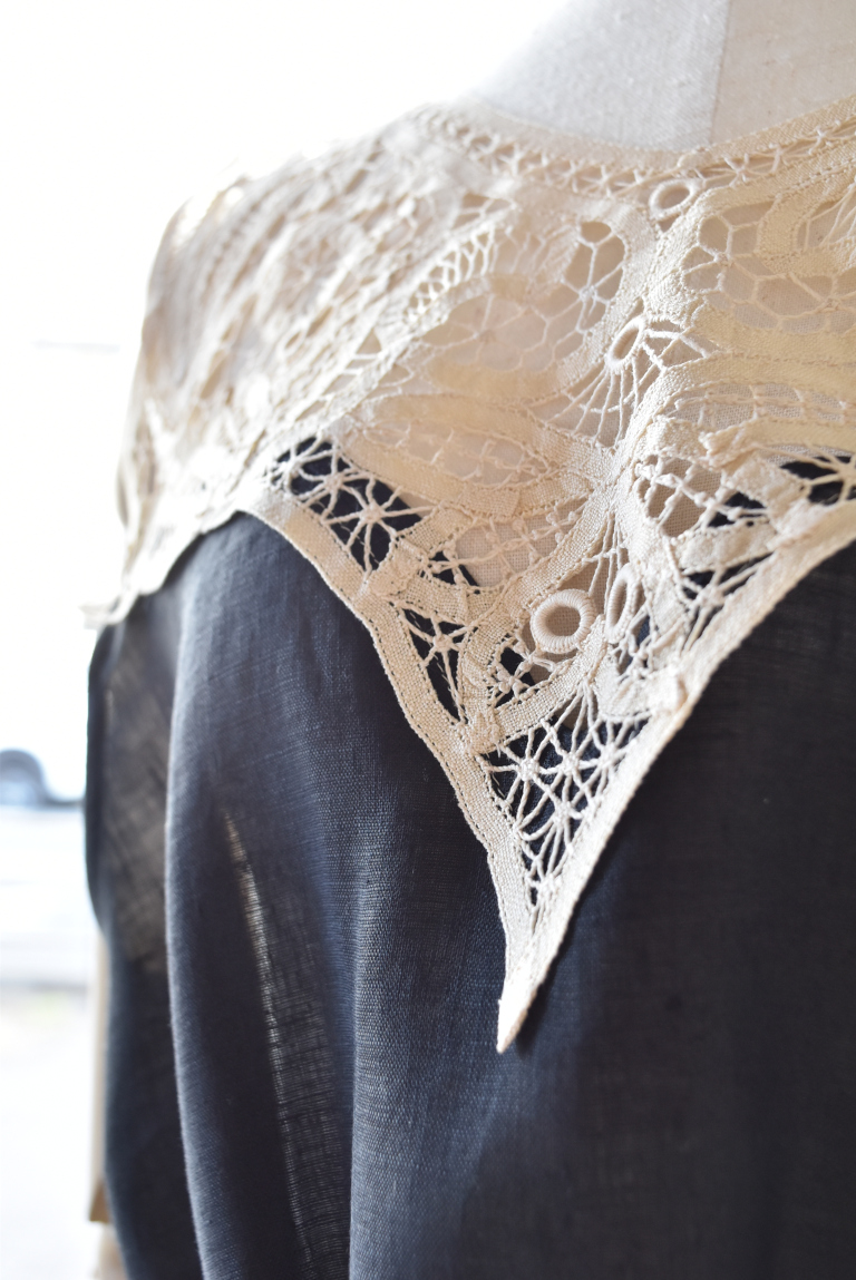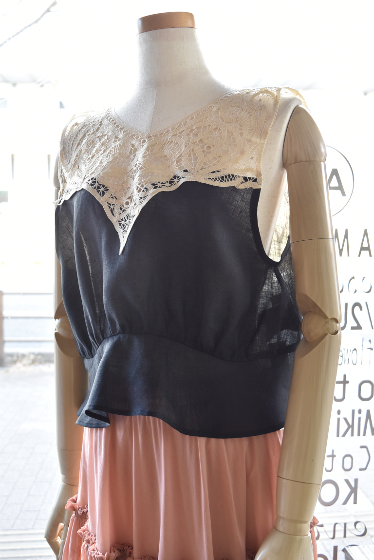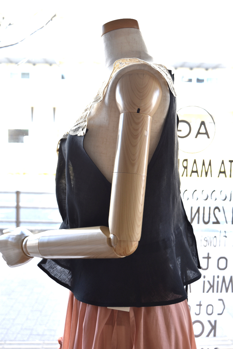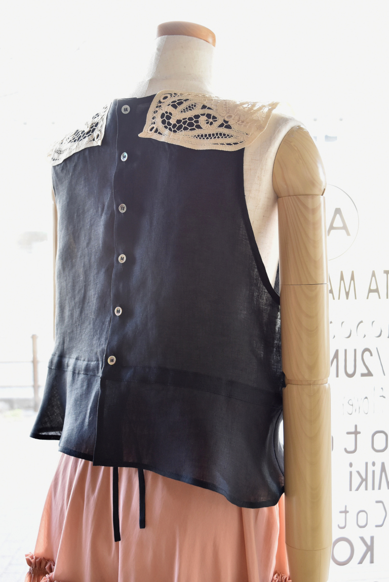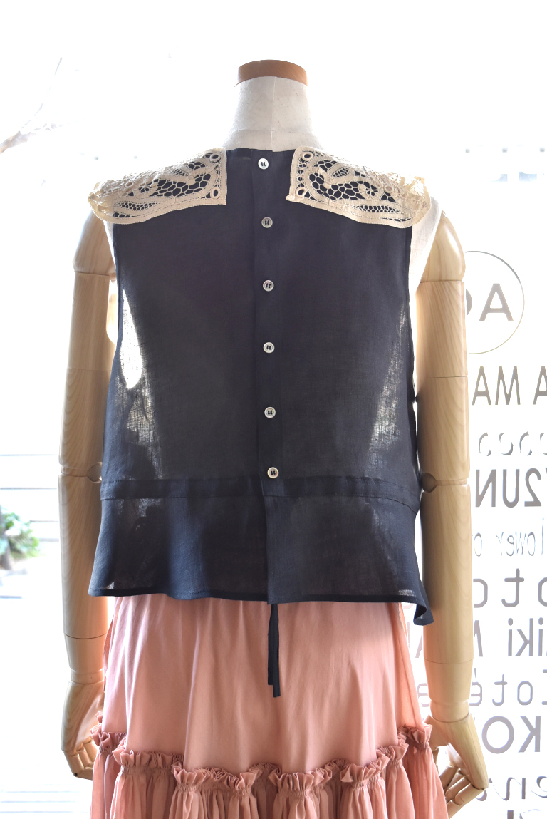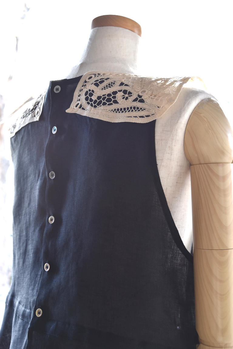 中国汕頭でヨーロッパ向けに作られた、バテンレースパーツをリメイクしたジレです。