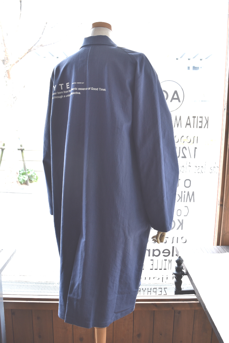 身幅はゆったりとしていますが、スッキリと見えるコートです。