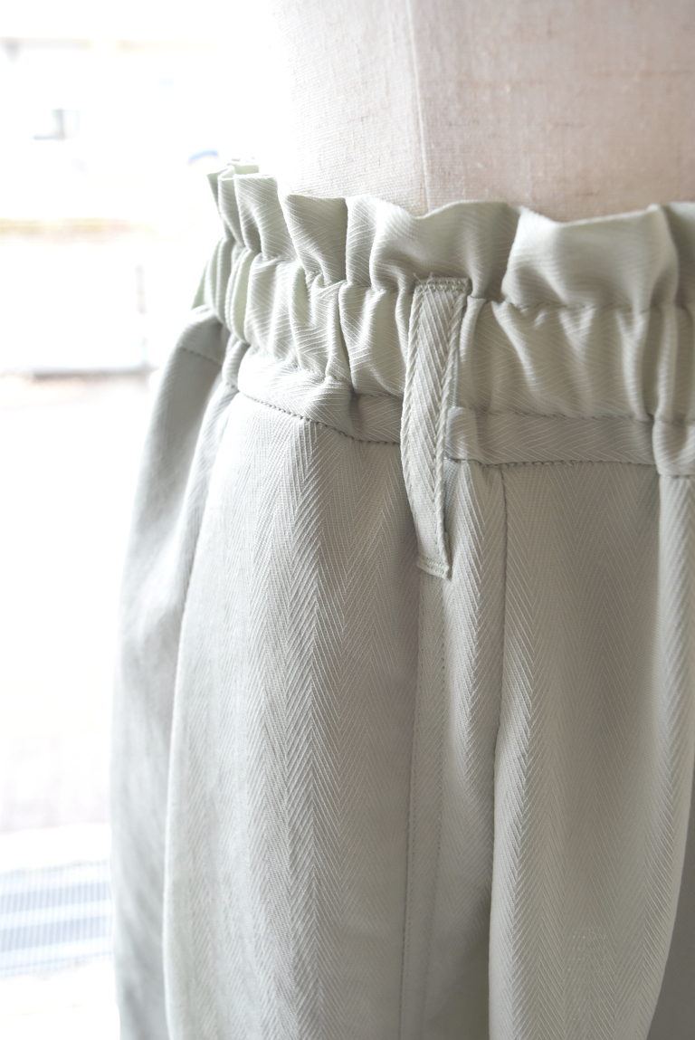 ウエストは総ゴム仕様で、サイズ調整用のドローコードが付いているため、快適な着心地を実現しています。