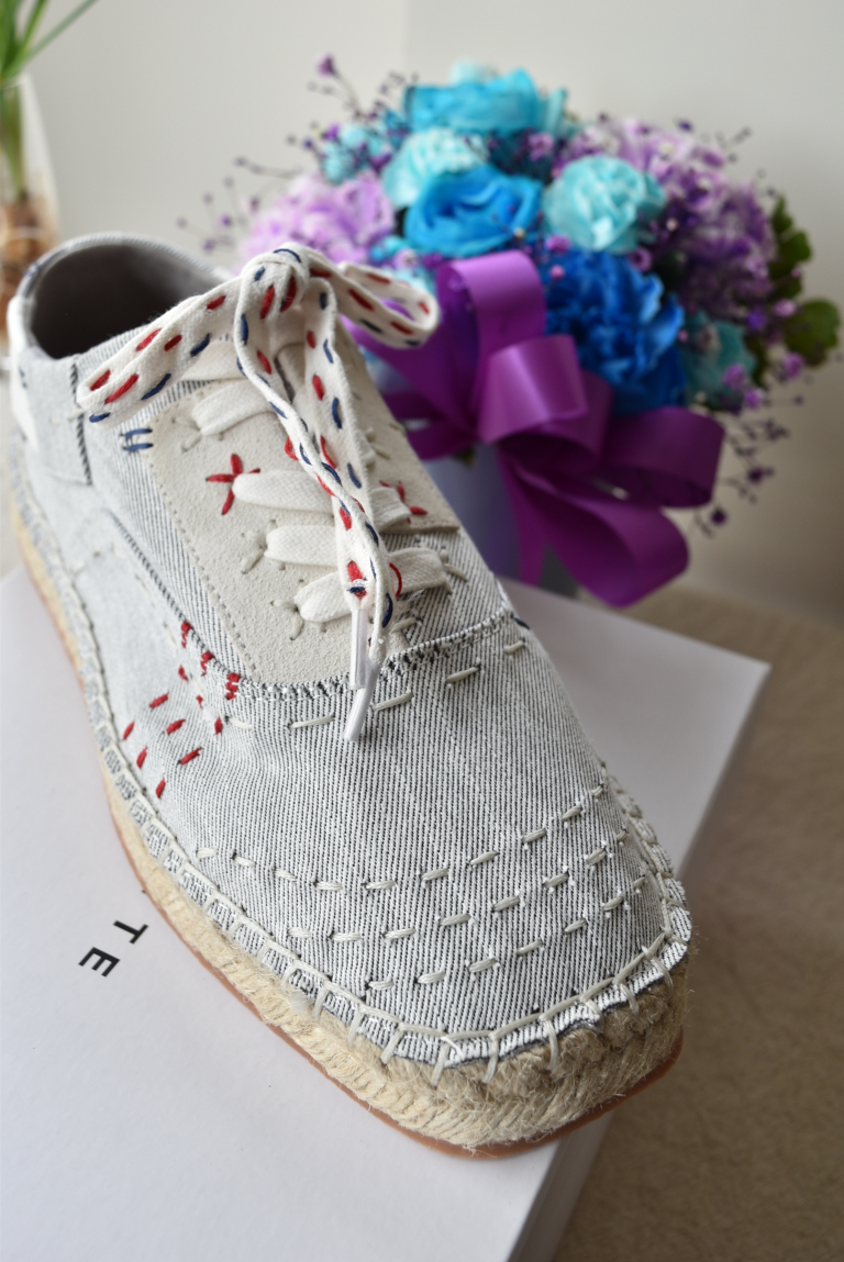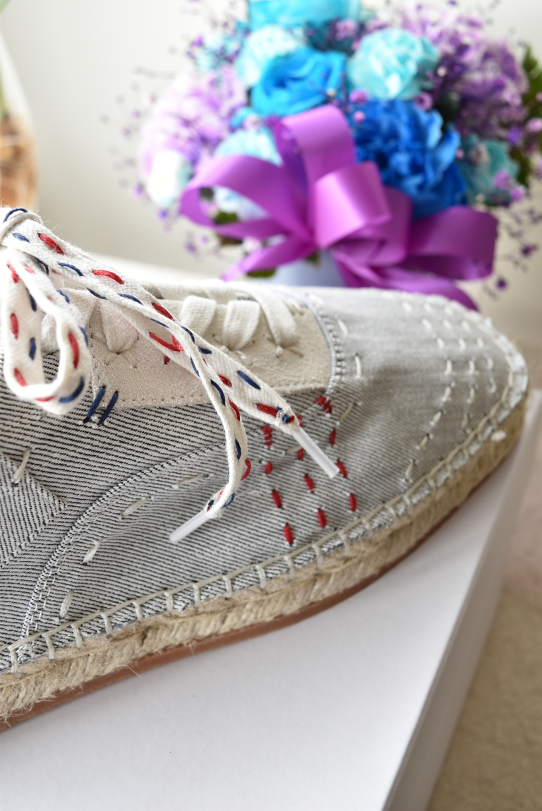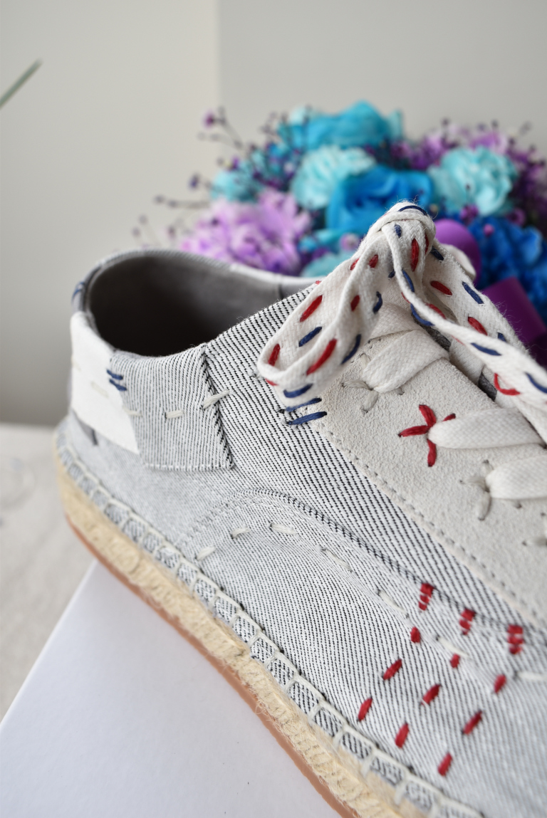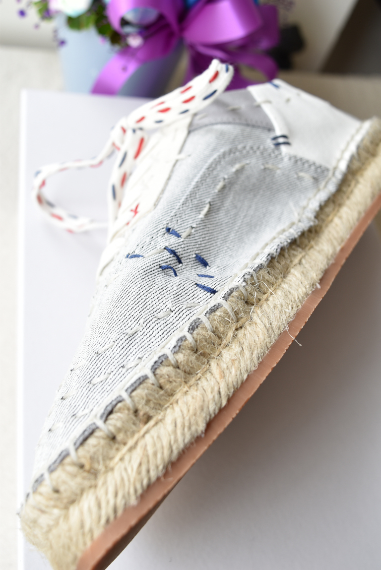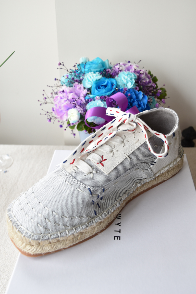 スペインの伝統的なエスパドリーユをベースに、日本の民族的な補強技法「刺し子」を融合させたハイブリッドシューズ