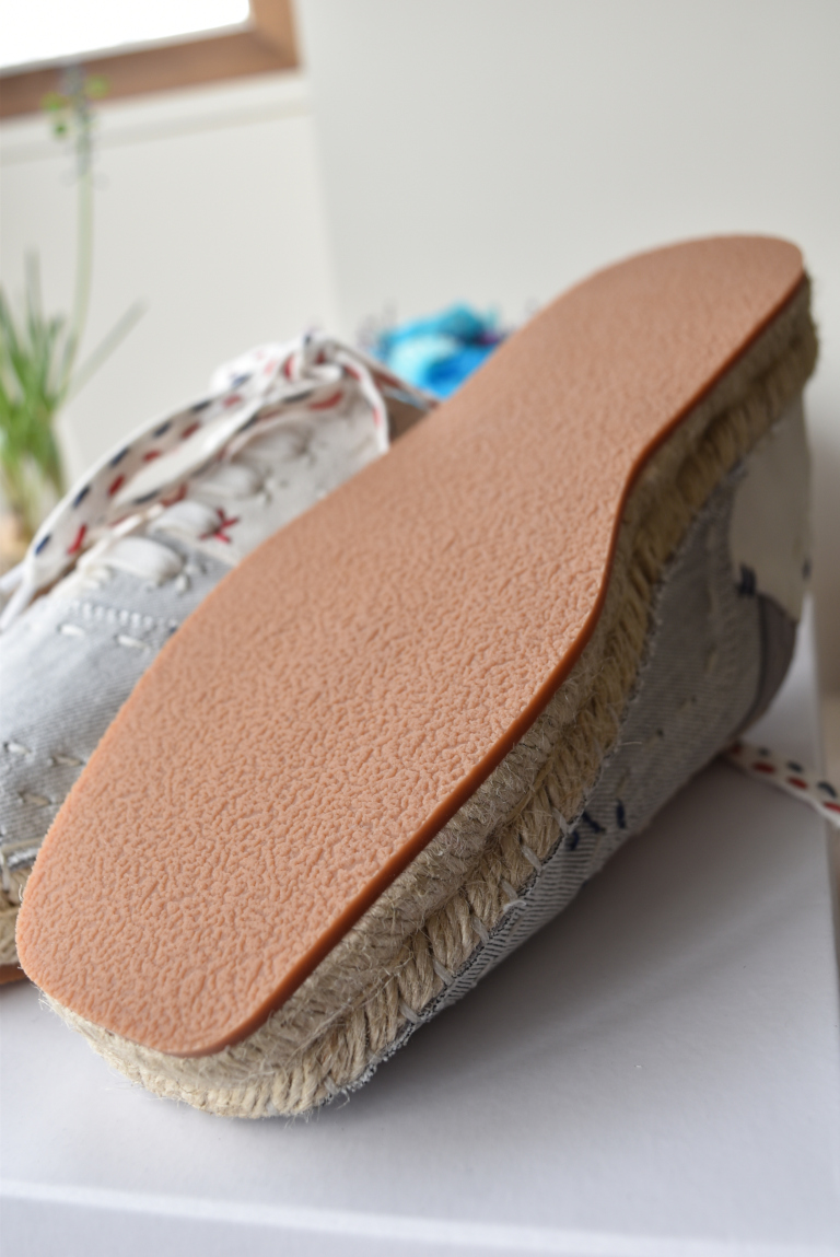 伝統的なジュートソールに、実用的なラバーアウトソールを接着