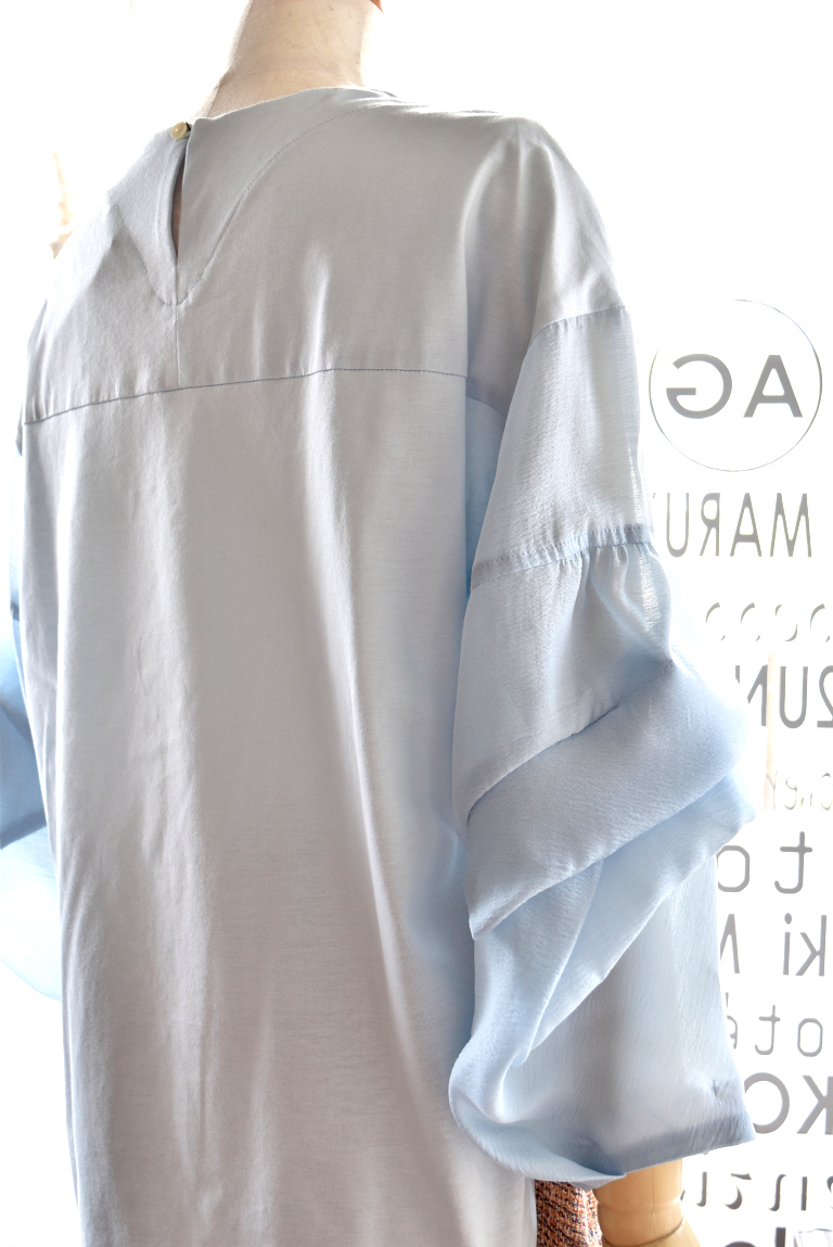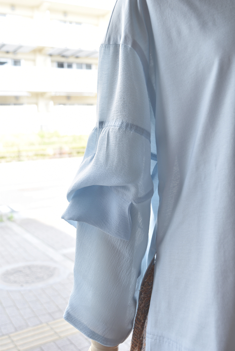 袖には軽やかな透け感と透明感の高いシアーサテンを。