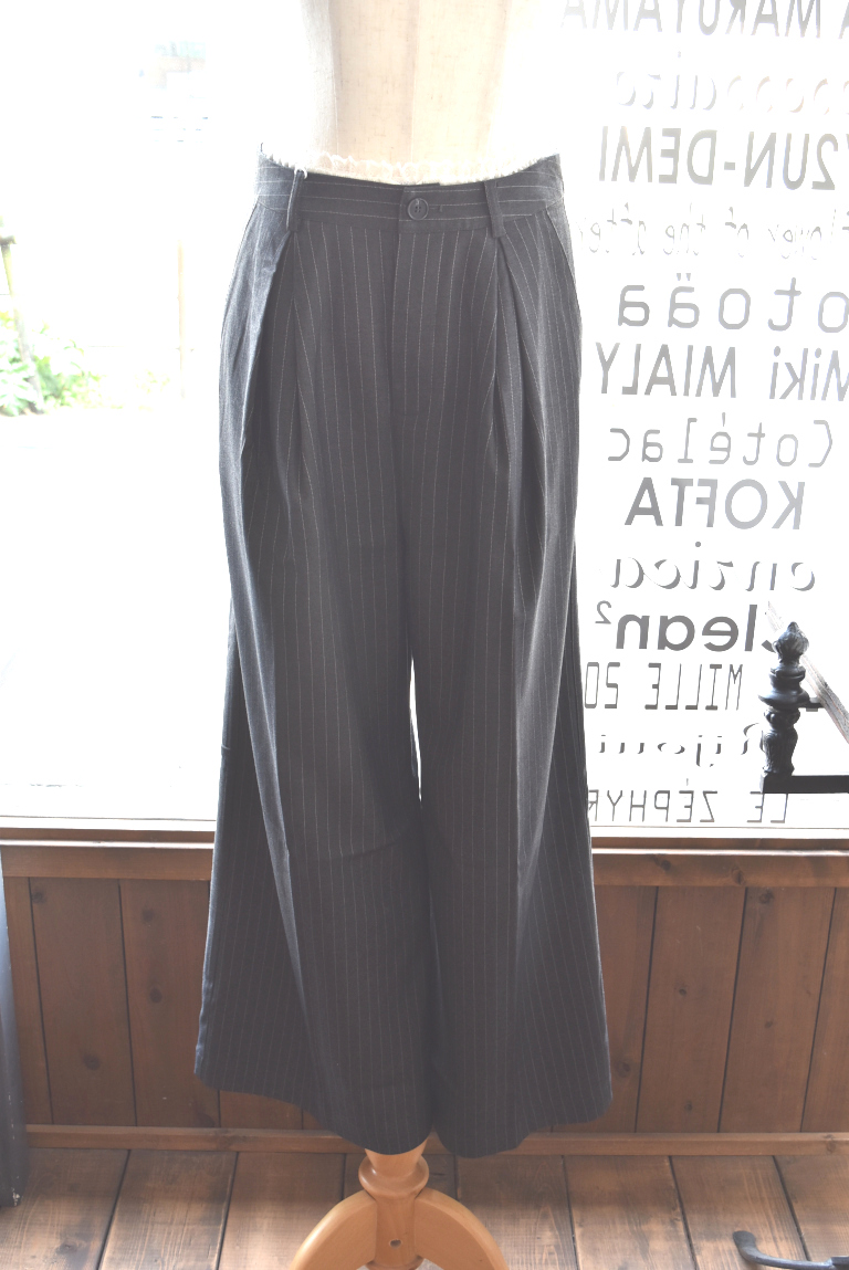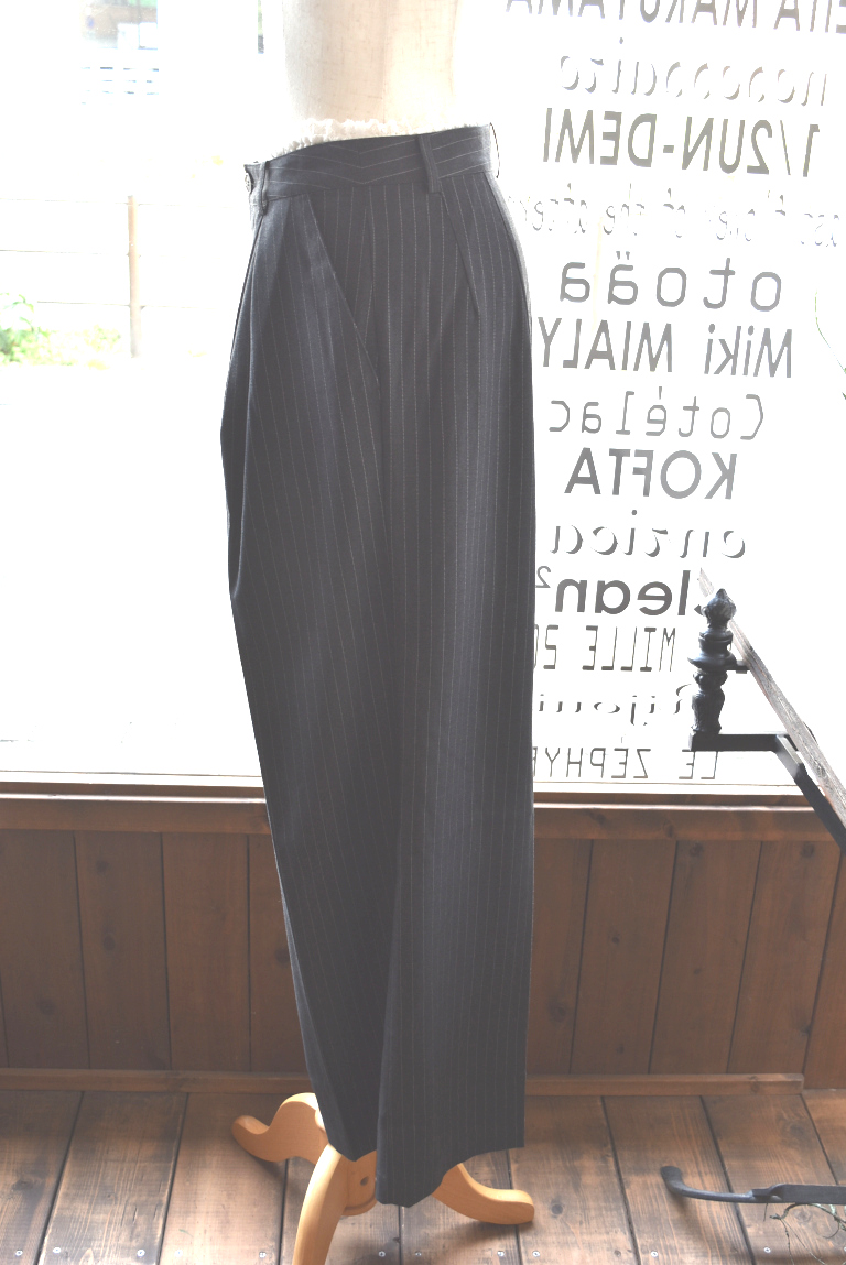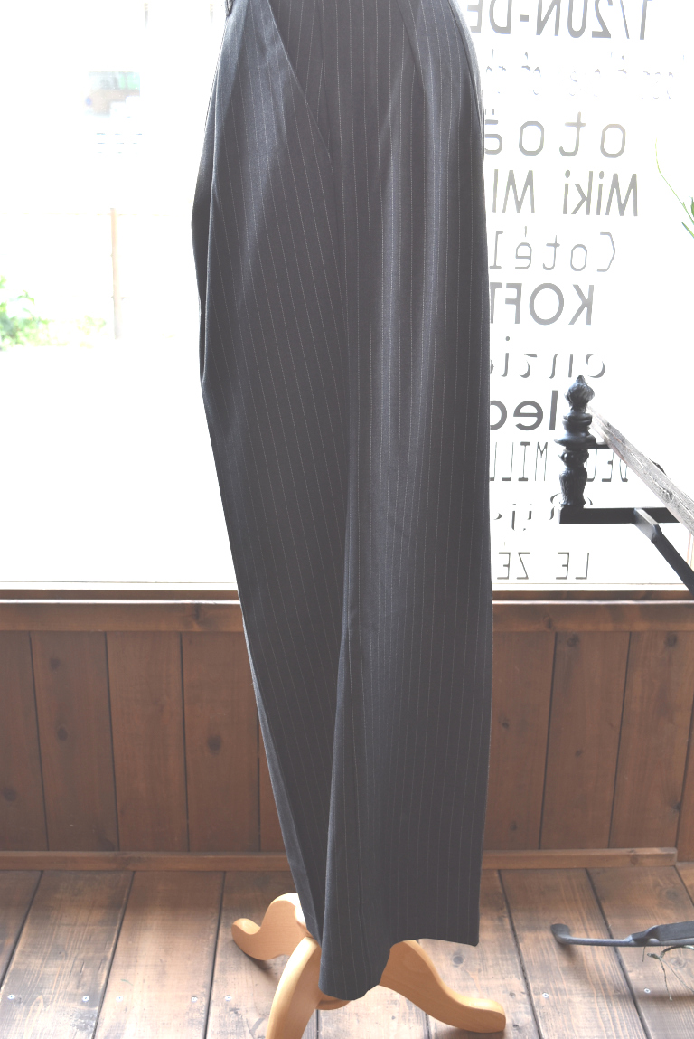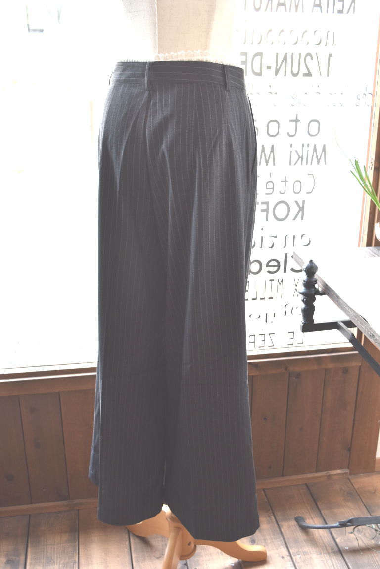 落ち感のあるワイドラインにピンストライプを効かせ、リラックス感がありながらもすっきりと見せてくれる一本です。