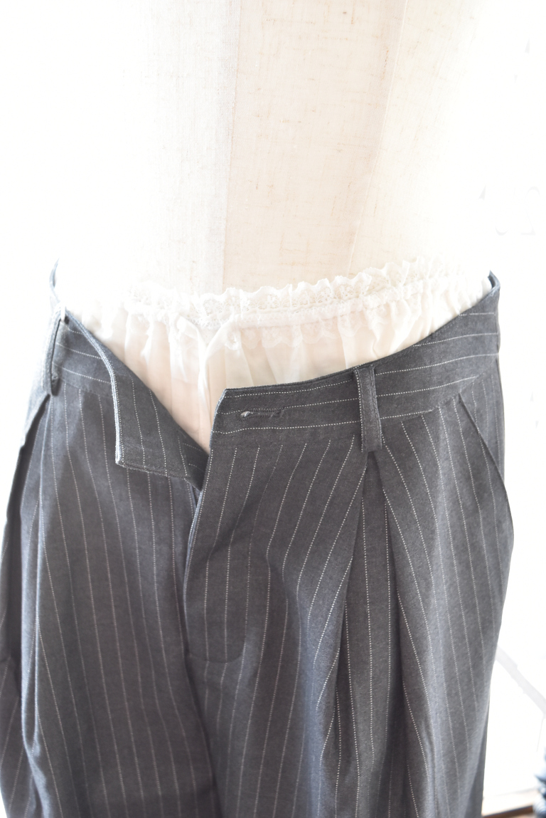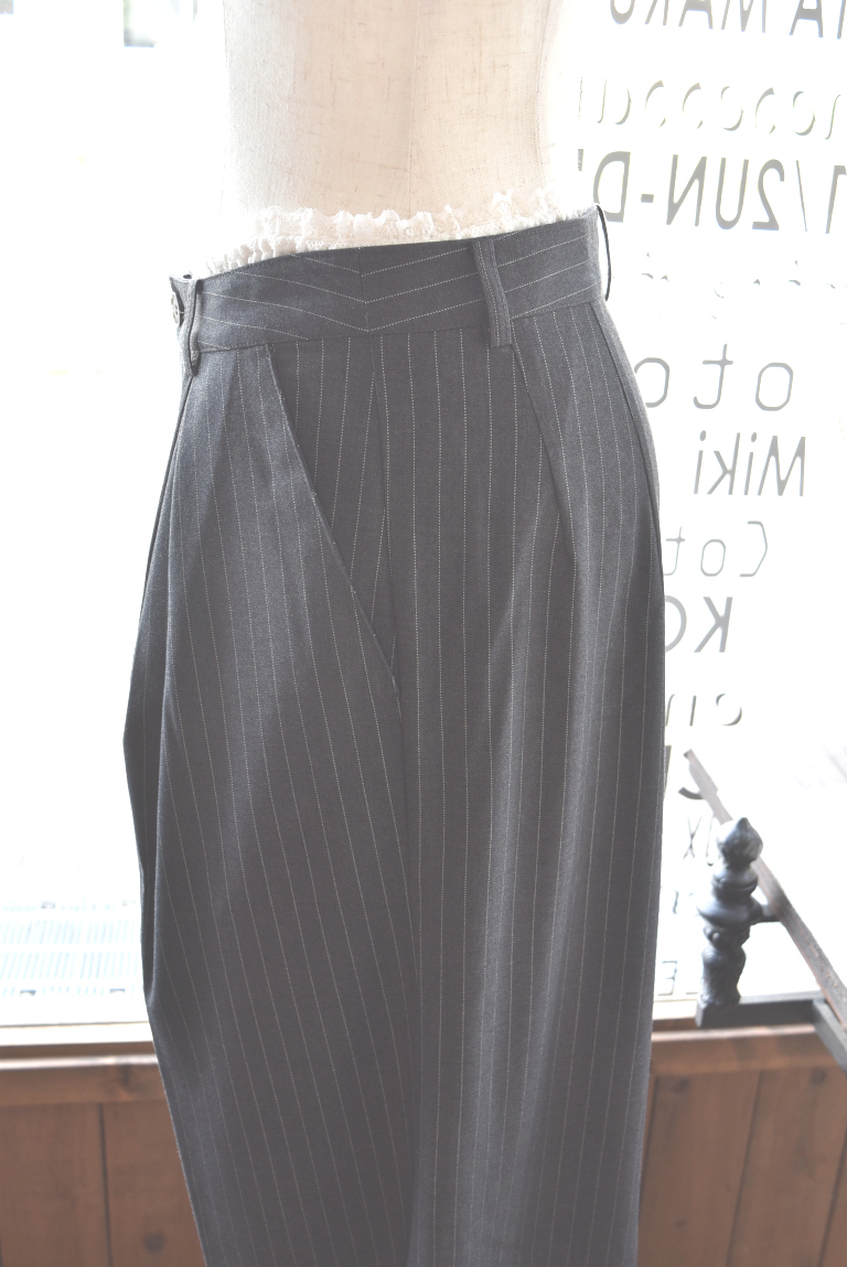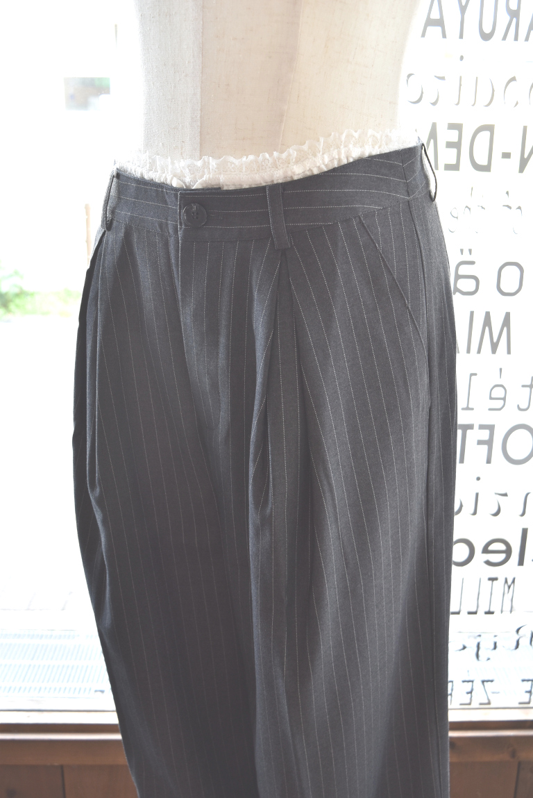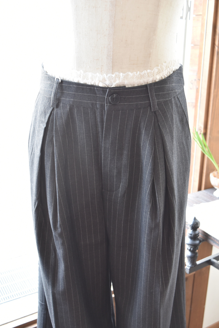 落ち感のあるワイドラインにピンストライプを効かせ、リラックス感がありながらもすっきりと見せてくれる一本です。