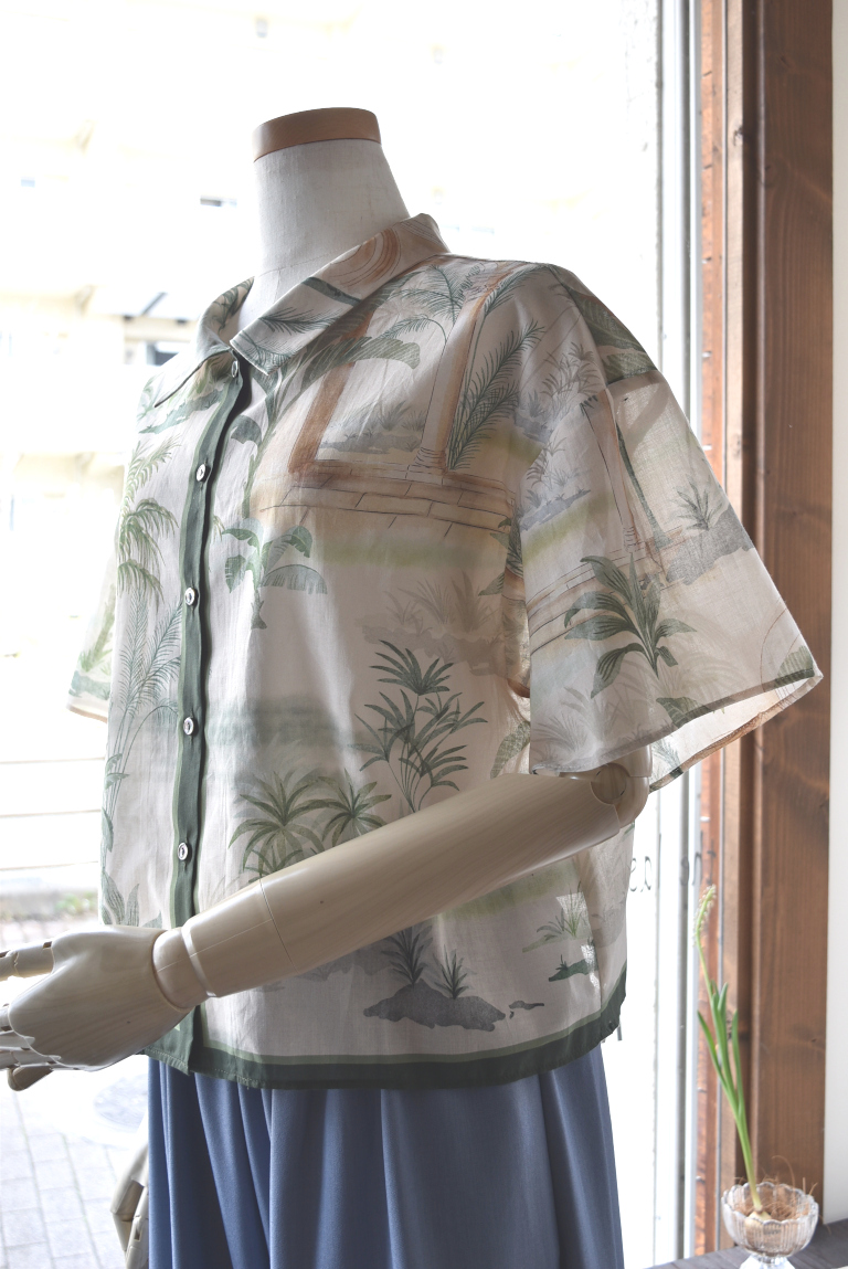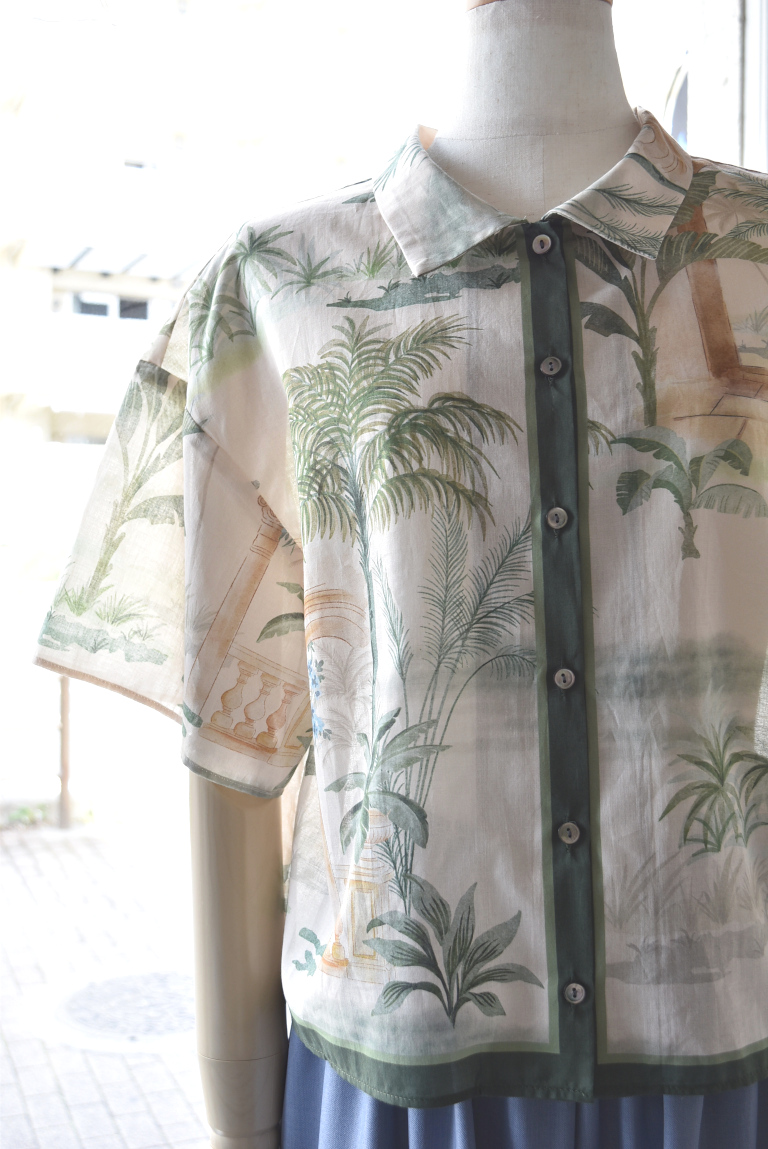 Bon vieux temps(ボンヴュータン) 26S/S プリント柄半袖ブラウス