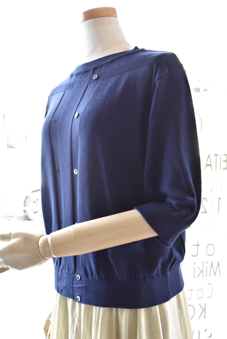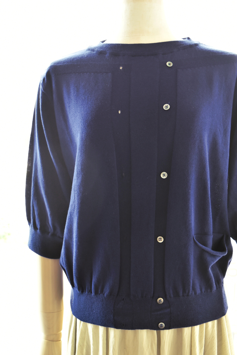 カーディガンを羽織っているようなデザインのニットです。
