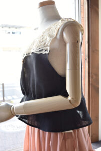 ジレ 2026年1月26日 Filed under: admin 50枚限定です。 Heriter Batten collar parts gilet カラーは、Blackです。 バテンレースパーツをリメイクしたジレになります。 ペプラムのラインがすごく綺麗なデザイン。