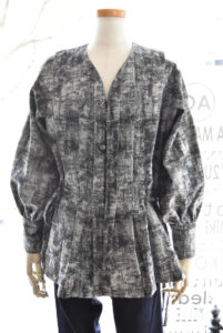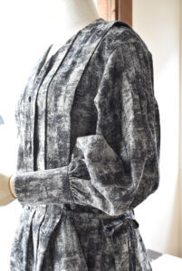 タックブラウス 2025年10月8日 Filed under: admin 渋い染め色で!! the last flower of the afternoon Tucked blouse カラーは、blackになります。 ウエストの横の紐で、ウエストラインを調節して頂けます。 前開きになります。 首元が綺麗な開きです♪