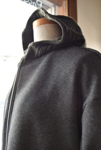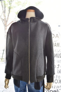 フード部分はケーブル柄のセーターライクなデザインに♪