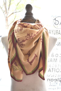 ベージュに柄 2025年11月8日 Filed under: admin 昨日と同じ素材のストールです。 manipuri ウールシルクヘリンボーンクロスステッチバンダナ カラーは、REDになります。 色合いはシンプル。 柔らかい色合いです!!