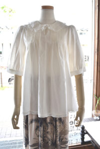 レース付 2026年4月19日 Filed under: admin 可愛いブラウス!! Bilitis dix-sept ans Linen Blouse カラーは、Whiteになります。 たっぷりと生地を使っているブラウス。 レース使いが可愛いです♪