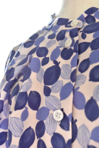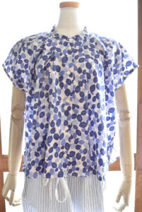 明るい気分に♪ 2026年3月19日 Filed under: admin 透け感もあまりなく、着やすそう♪ ZAKURA ネックタックブラウス カラーは、ネイビーになります。 コットンサテン生地で、つやっと軽やかです!! 馴染みやすい柄なので着やすいです。