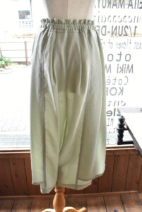 生地違い 2026年2月12日 Filed under: admin 昨日ご紹介させて頂いたパンツと 形は同じですが、生地感が違っています!! OTOAA POLYESTER LAYERED HARF-SKIRT PANTS カラーは、MINTになります。 凹凸のある糸を使用しています。 ドライタッチなヘリンボーン素材♪ 落ち感があります。