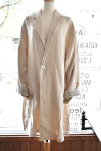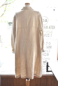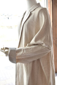 羽織りもの♪ 2025年9月20日 Filed under: admin やっと、やっと涼しく??なりました。 束の間のことなのか・・・どうなのか・・・ですが。 1週間ぐらいは涼しく過ごせそうですね。 バサっと羽織れる1枚を!! vent vlanc アトリエデザインコート カラーは、NATURALです。 ゆったりとした綿麻の生地のコートです。 袖口は折り返すとストライプ生地になります。 そろそろ出番ですね!!