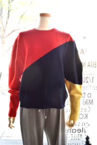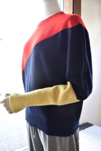 3色使い!! 2025年11月27日 Filed under: admin 丸首ニットです!! KOFTA パネルカラー丸首ニット カラーが3色(RED/NAVY/YELLOW)になります。 色目が楽しい1枚。 袖口がキュっと引き締まっているデザインです。 シルエットが素敵です♪